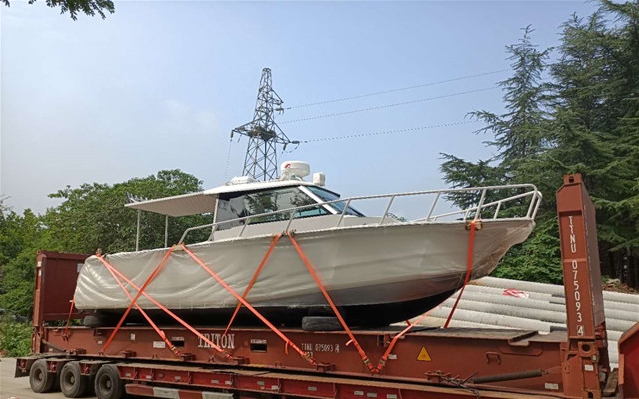 船況簡介: 該船是澳大利亞客戶訂購的鋁合金釣魚艇海釣船,船體凈長度9.7米,